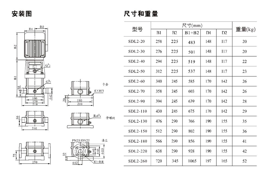 南元SDL2/SDLT2立式多級(jí)離心泵有不同的泵規(guī)格和不同級(jí)數(shù),以滿(mǎn)足所需的流量和壓力。