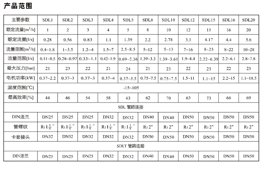 SDL2/SDLT2是一種多功能產(chǎn)品,可以輸送從自來(lái)水到工業(yè)液體的各種不同介質(zhì),適用于不同溫度、流量和壓力范圍。