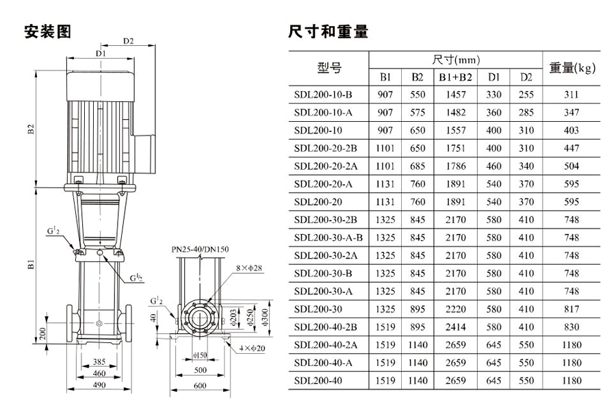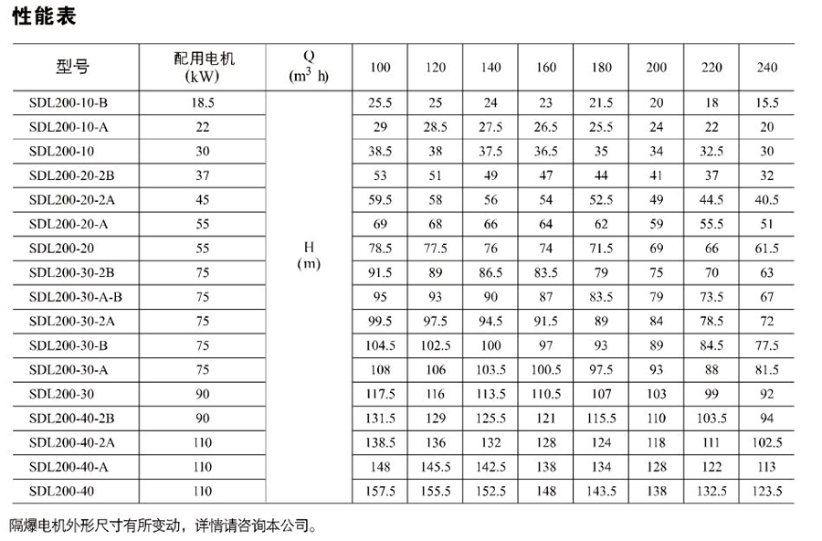 南元SDL200/SDLT200立式多級離心泵有不同的泵規格和不同級數,以滿足所需的流量和壓力。