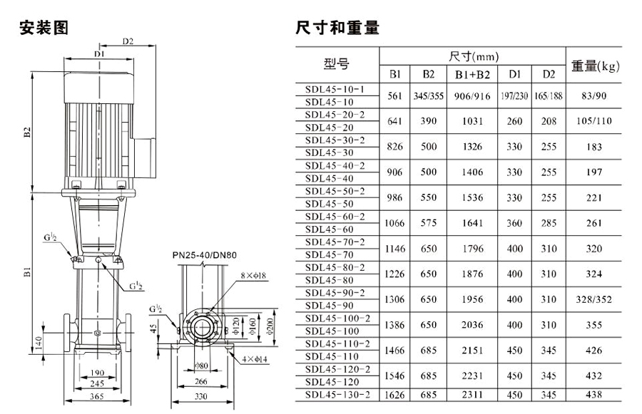 南元SDL45/SDLT45立式多級(jí)離心泵有不同的泵規(guī)格和不同級(jí)數(shù),以滿足所需的流量和壓力。