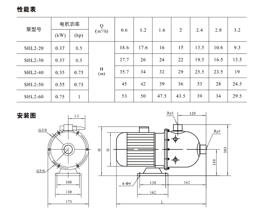 SHL/SHF/SHFT2為臥式多級非自吸多級離心泵,配加長軸電機。緊湊式結構使泵尺寸很小,軸向入口或徑向出口。