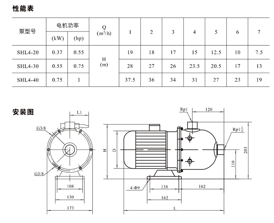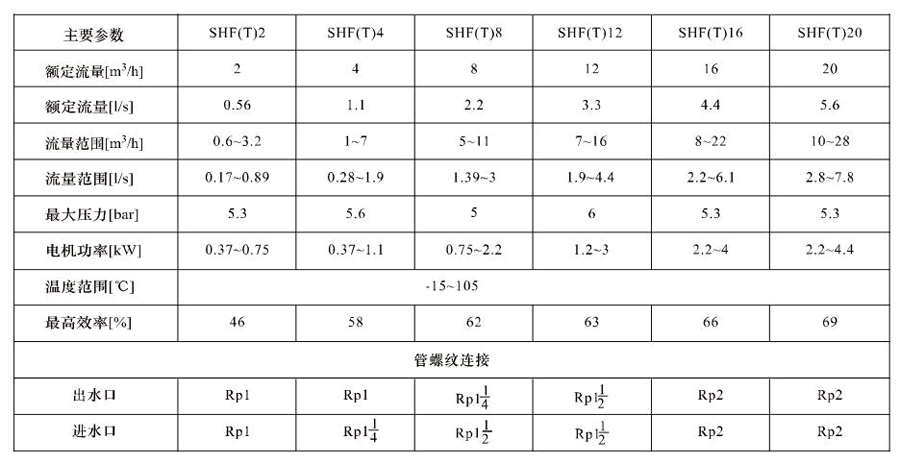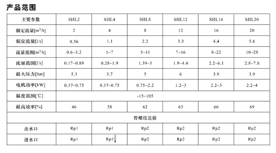 SHL/SHF/SHFT4為臥式多級非自吸多級離心泵,配加長軸電機。緊湊式結構使泵尺寸很小,軸向入口或徑向出口。