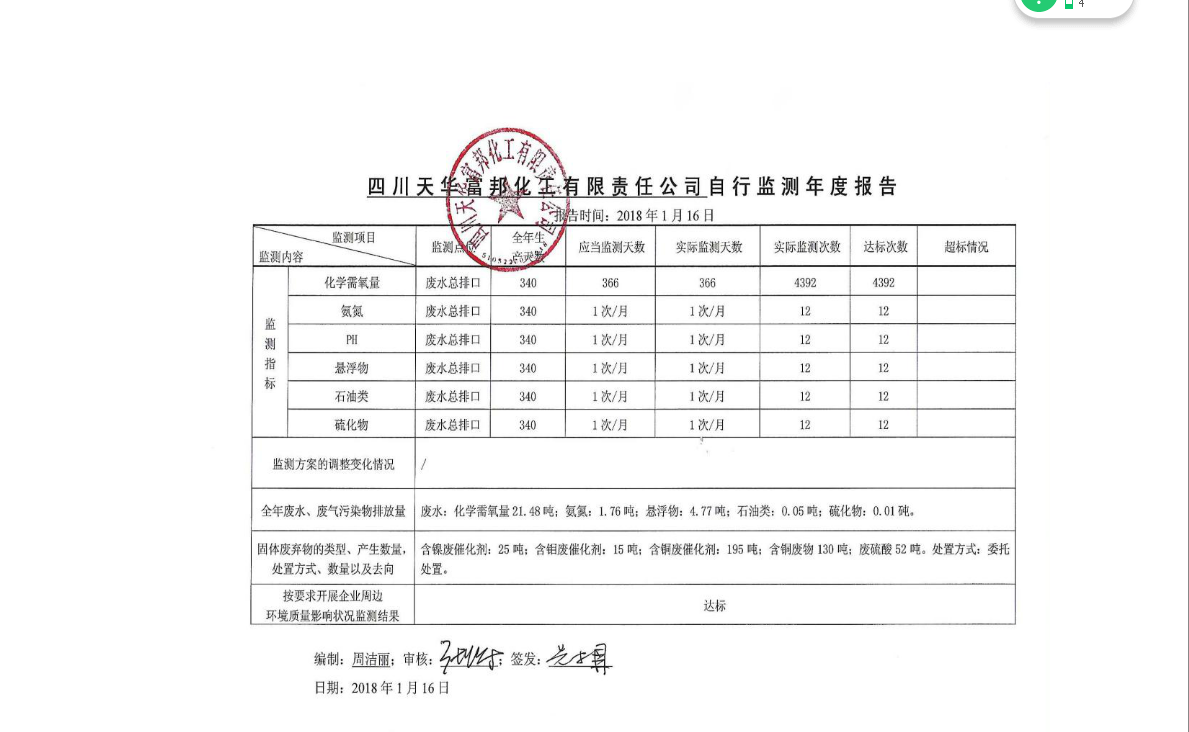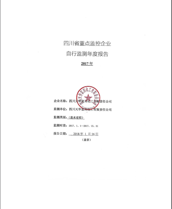 四川天華富邦化工有限責(zé)任公司2017年度自行監(jiān)測報(bào)告