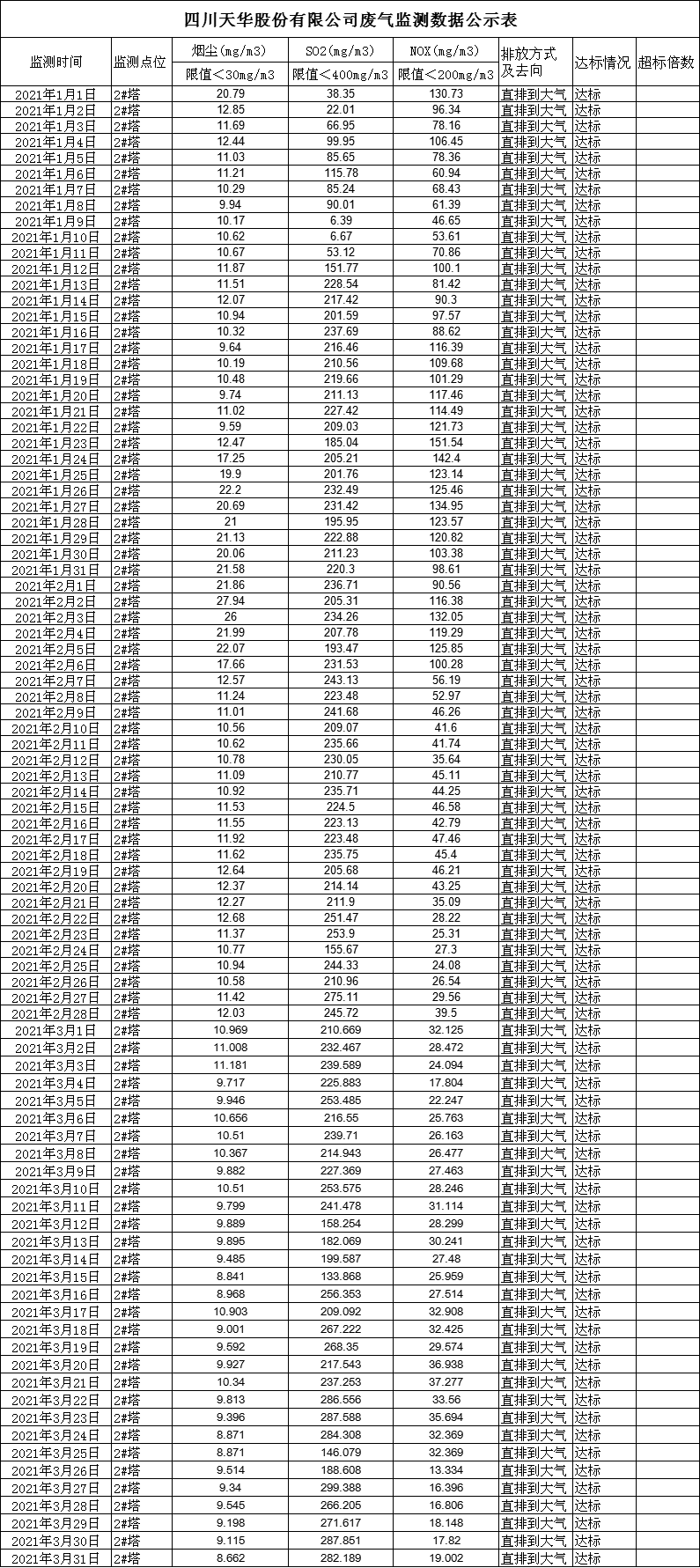 四川天華股份有限公司3月廢氣監測公示