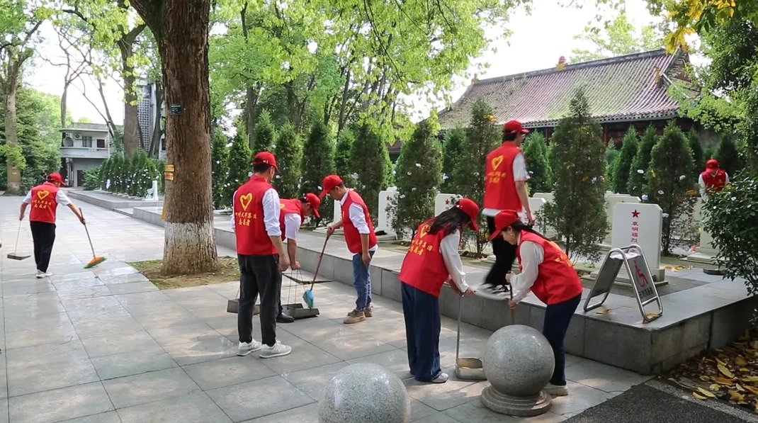 活動最后,志愿者們還擦拭烈士墓碑,清掃樹木枯枝。經(jīng)過辛勤勞動,烈士陵園變得更顯整潔、肅穆。